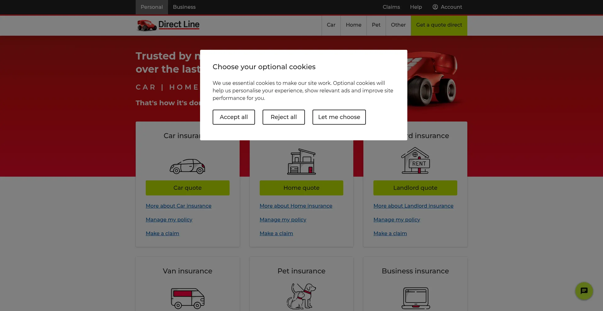 The website implements cookie consent mechanisms in compliance with privacy regulations such as GDPR or CCPA. This demonstrates that directline.com adheres to data protection standards and provides users with control over personal data collection practices.
