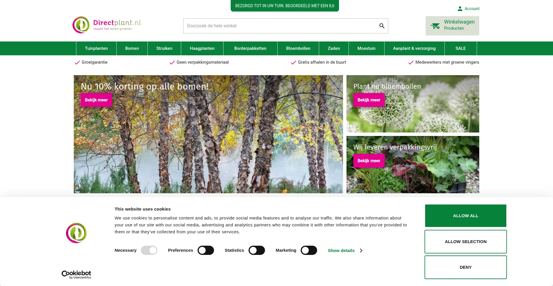 The website implements cookie consent mechanisms in compliance with privacy regulations such as GDPR or CCPA. This demonstrates that directplant.nl adheres to data protection standards and provides users with control over personal data collection practices.