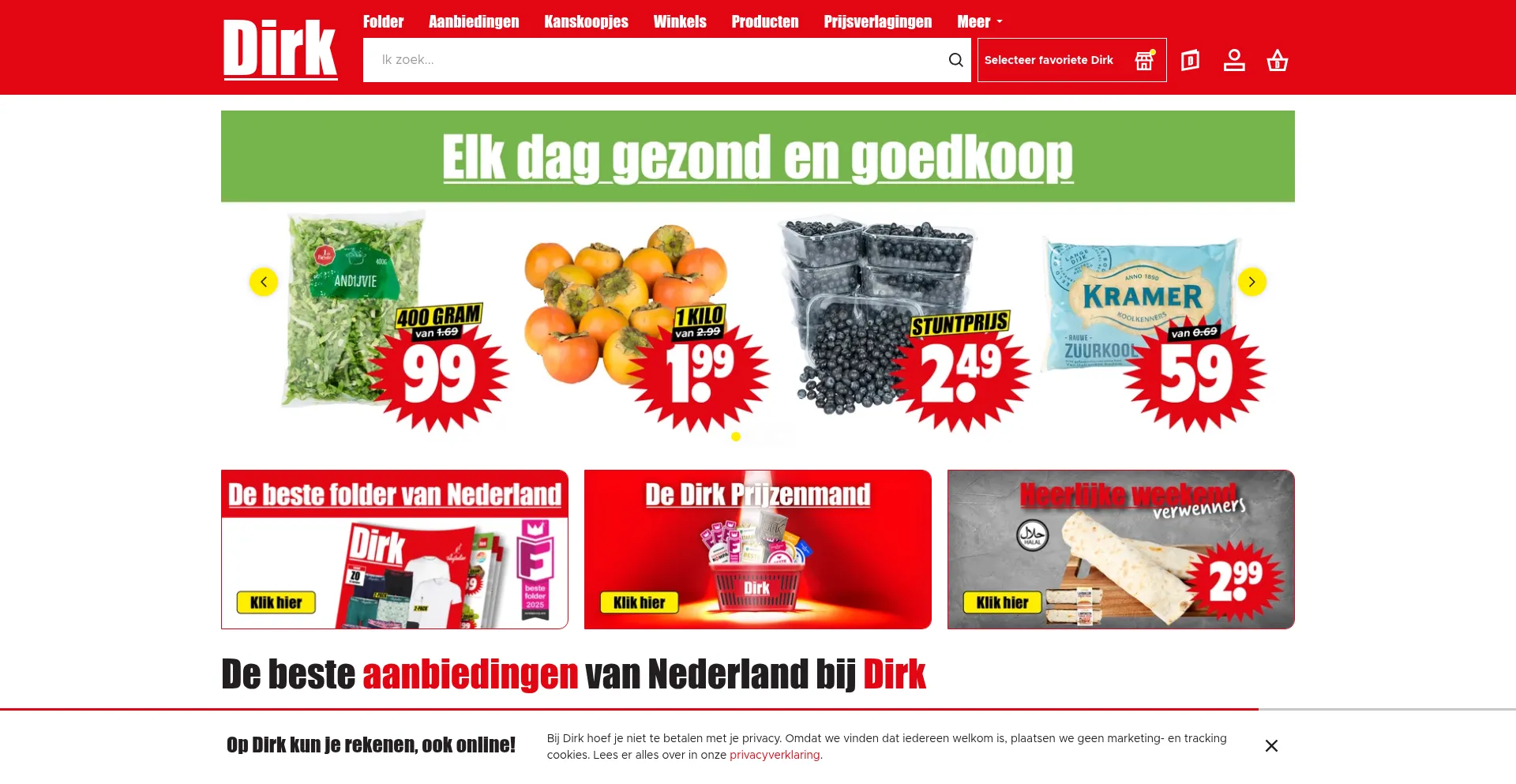 Haal al je boodschappen bij Dirk! Je vindt de beste aanbiedingen in de folder en online. Waarom zou je meer betalen? Op Dirk kun je rekenen!