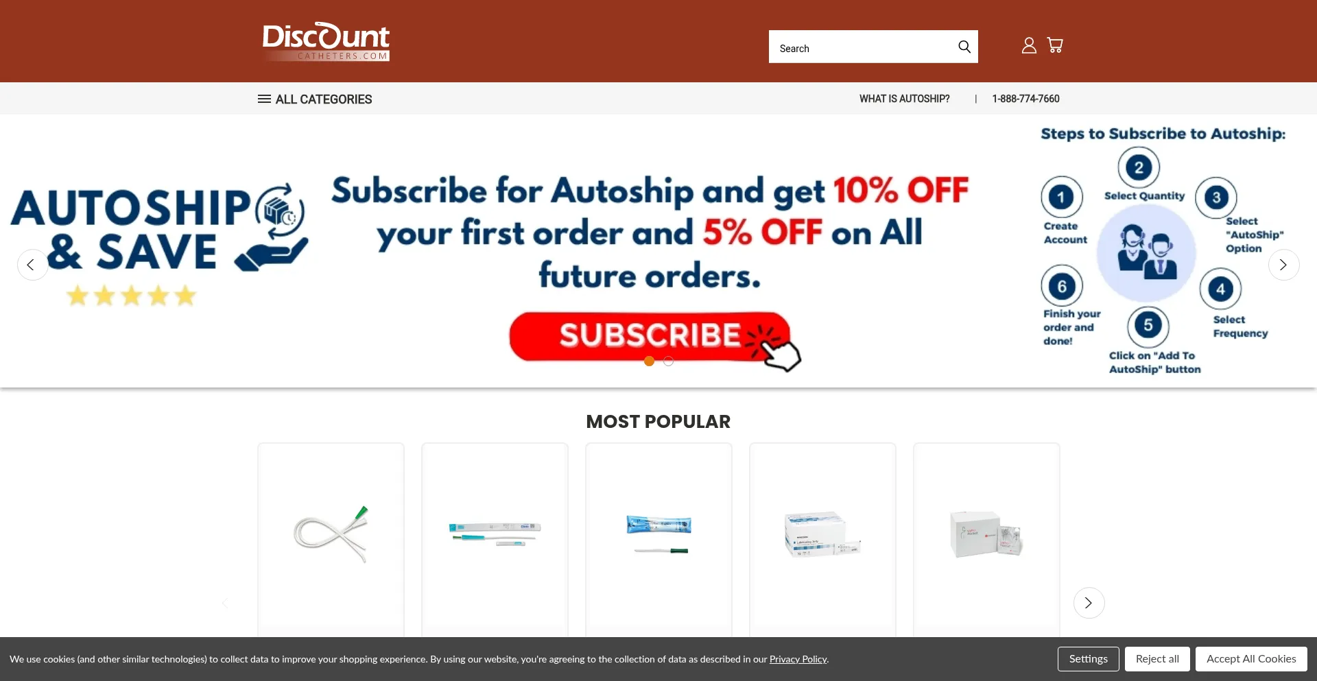 The website implements cookie consent mechanisms in compliance with privacy regulations such as GDPR or CCPA. This demonstrates that discountcatheters.com adheres to data protection standards and provides users with control over personal data collection practices.
