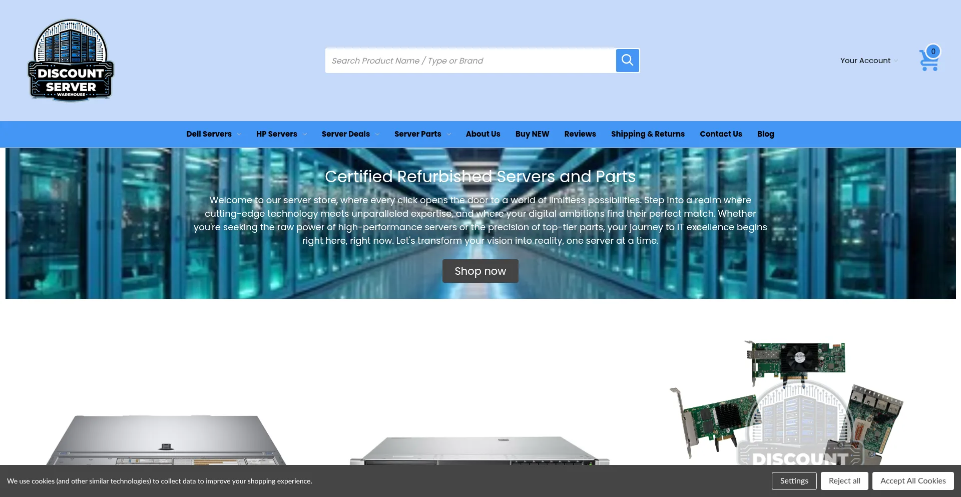 The website implements cookie consent mechanisms in compliance with privacy regulations such as GDPR or CCPA. This demonstrates that discountserverwarehouse.com adheres to data protection standards and provides users with control over personal data collection practices.