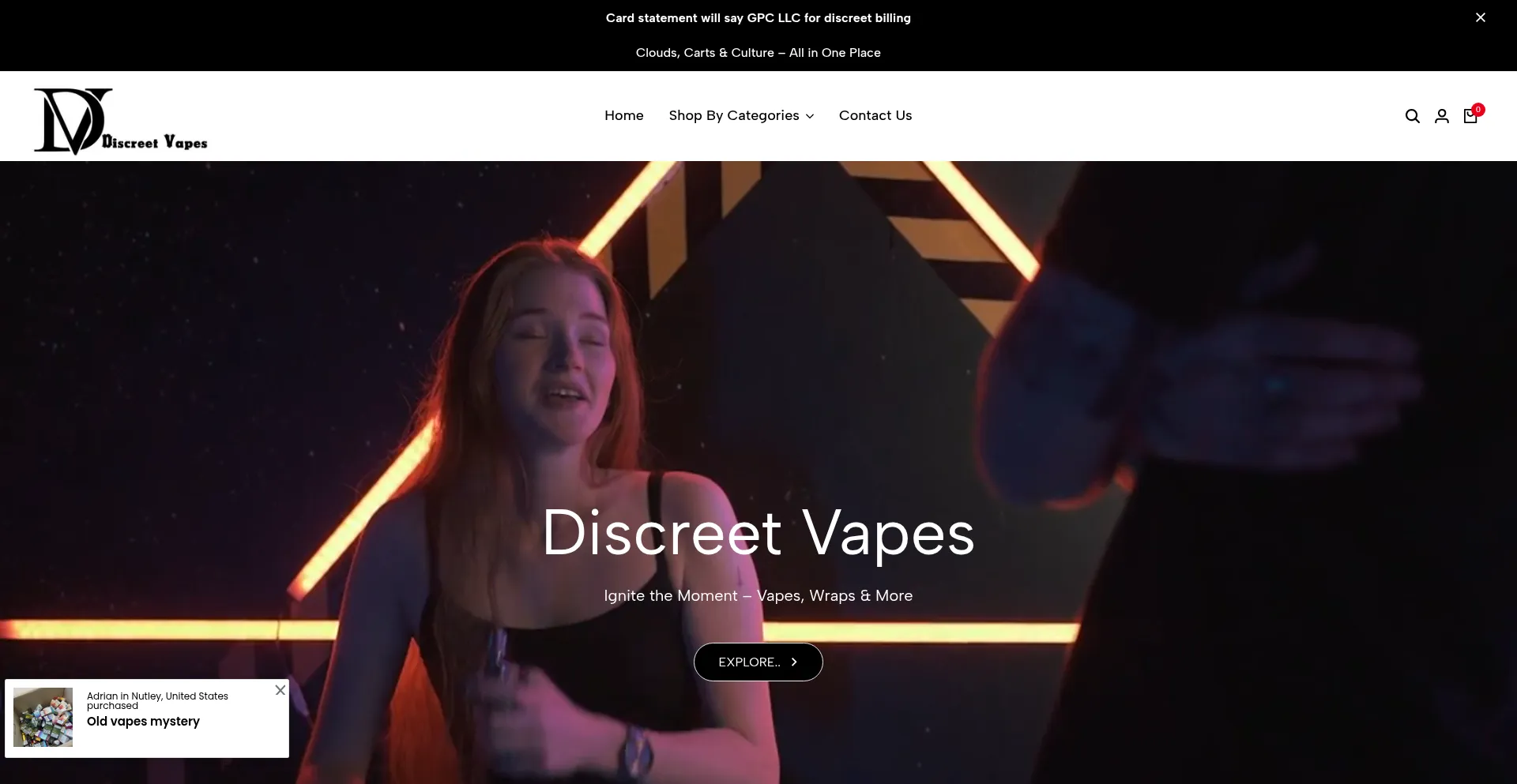 Analysis indicates that discreetvapes.com operates as an e-commerce platform facilitating online transactions for goods or services. The website implements shopping cart functionality, payment processing systems, and product catalog features typical of commercial retail operations.