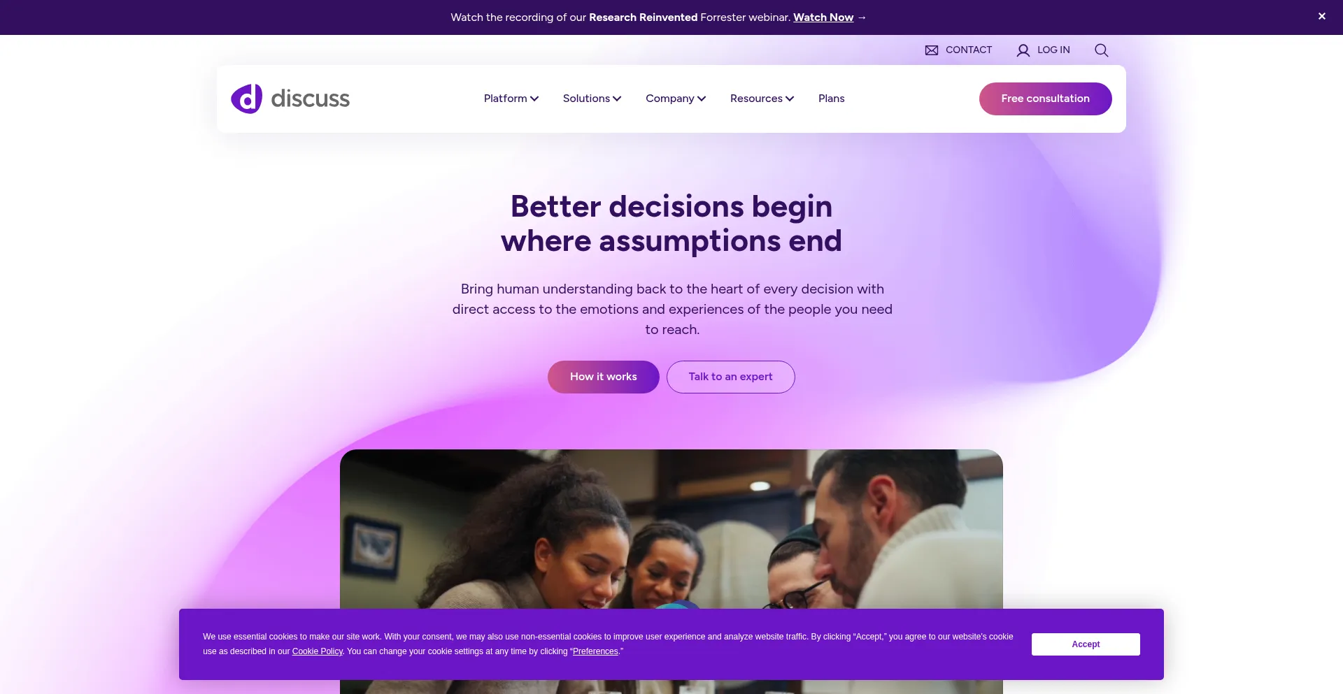 If you are looking for a software that provides market insights and qualitative research data analysis, look no further than Discuss.