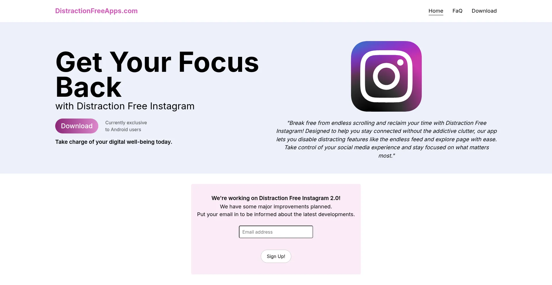 We build mods of social media apps such as Instagram to help you stay focused, avoid distractions, and help you practice digital minimalism.