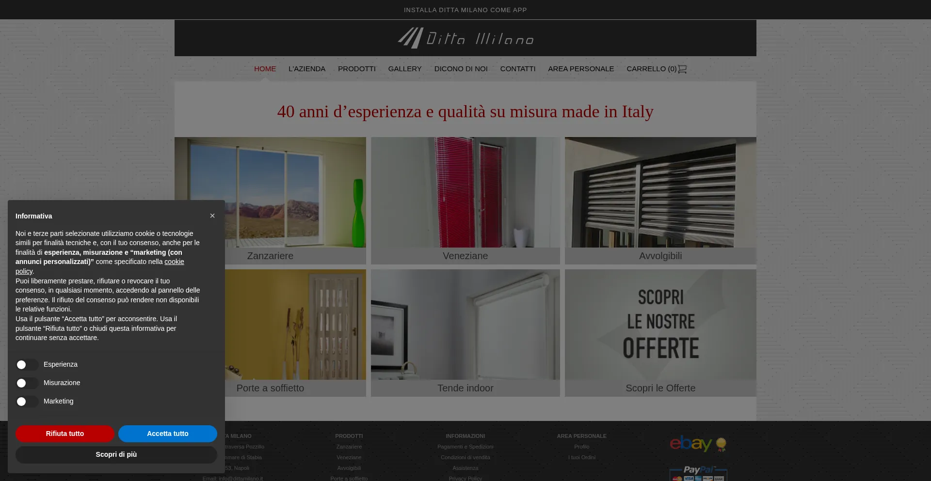 Nata nel 1980 la Ditta Milano vanta una lunga e consolidata esperienza nel settore della produzione di zanzariere, veneziane, avvolgibili, tende, plissé e porte a soffietto. ...