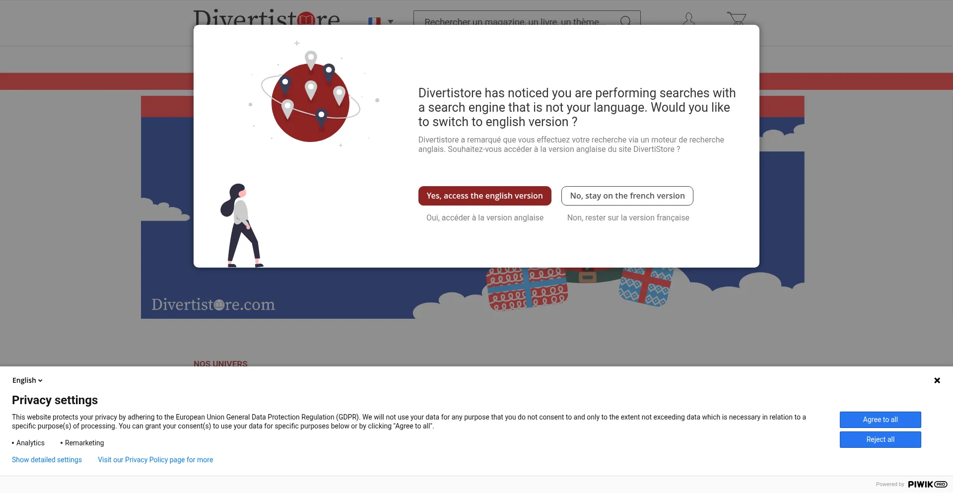 The website implements cookie consent mechanisms in compliance with privacy regulations such as GDPR or CCPA. This demonstrates that divertistore.com adheres to data protection standards and provides users with control over personal data collection practices.