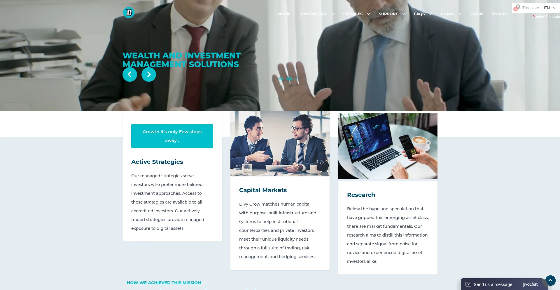 The divygrow.com website provides financial services including investment management, wealth advisory, or financial planning solutions. Services may encompass portfolio management, investment opportunities, financial consulting, or asset growth strategies for individual and institutional clients.