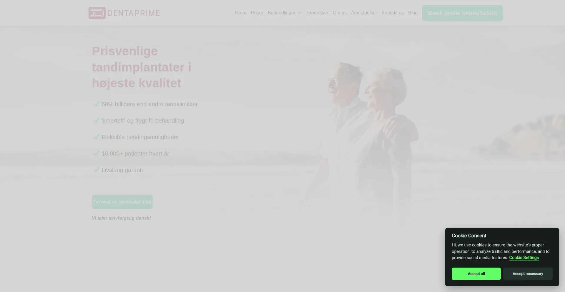The website implements cookie consent mechanisms in compliance with privacy regulations such as GDPR or CCPA. This demonstrates that dk.dentaprime.com adheres to data protection standards and provides users with control over personal data collection practices.