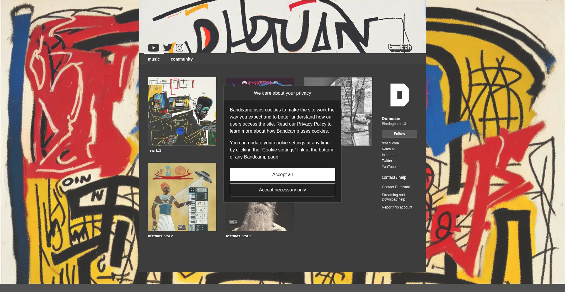 instagram.com o363271.ingest.us.sentry.io js.stripe.com f4.bcbits.com twitch.tv youtube.com s4.bcbits.com www.googletagmanager.com www.instagram.com dumisani.bandcamp.com +8 more