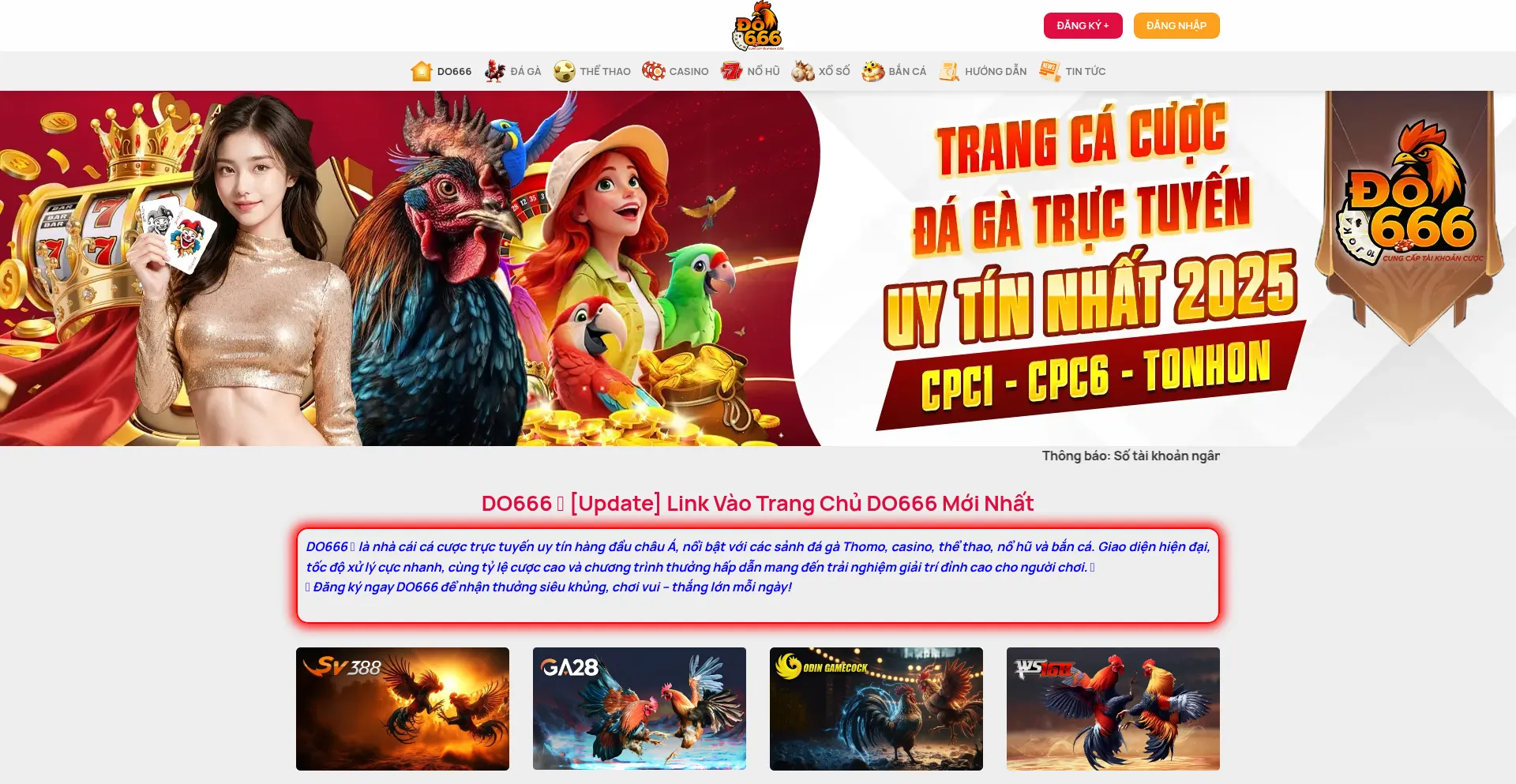 DO666 - Nhà cái đá gà Thomo uy tín hàng đầu châu Á. Trực tiếp full HD 🎯 Tỷ lệ cược cao 💰 Nạp rút siêu tốc, khuyến mãi khủng mỗi ngày �...