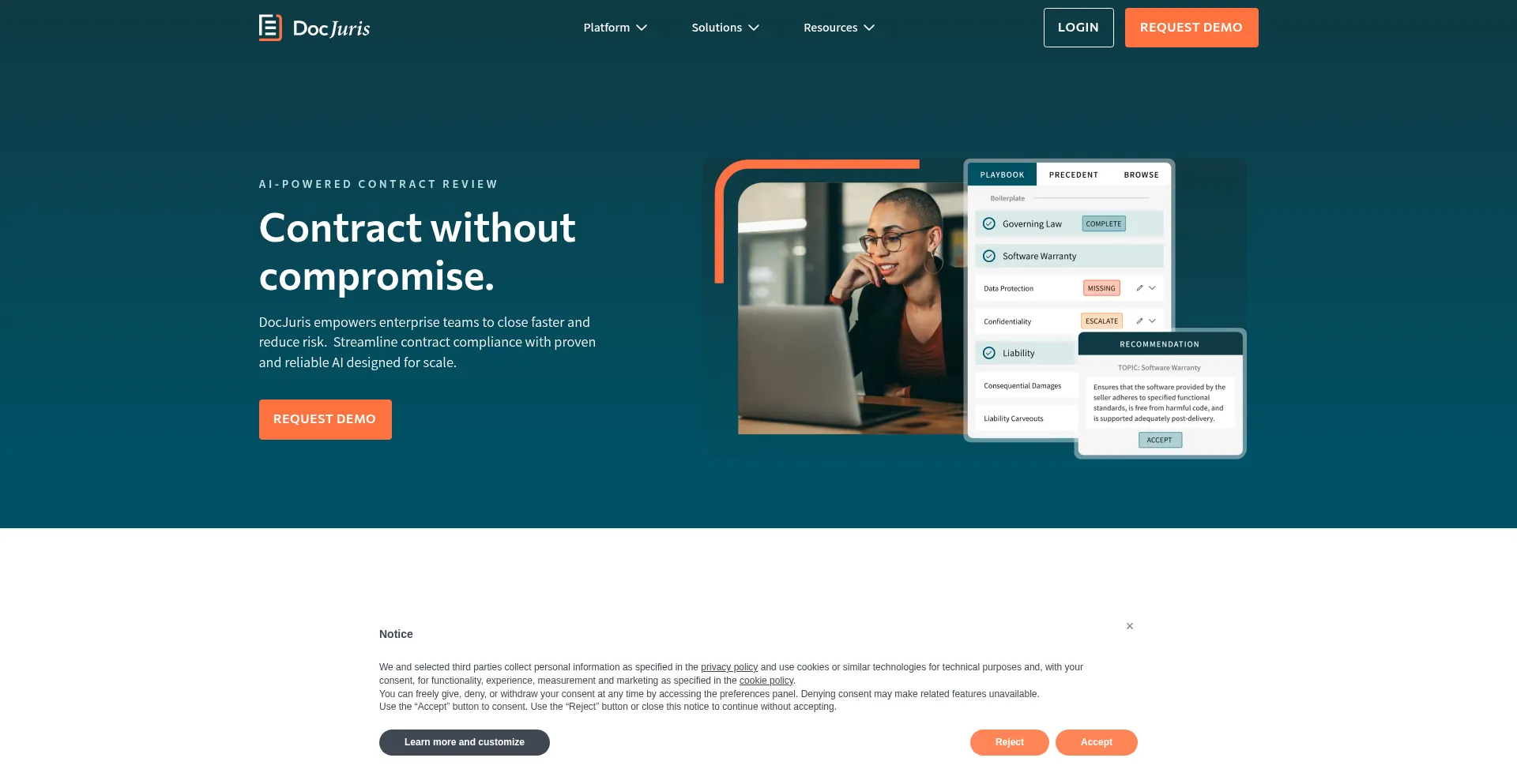 Trusted by leading corporations, DocJuris offers AI contract review software that reduces cycle times, enhances consistency, and increases team satisfaction.
