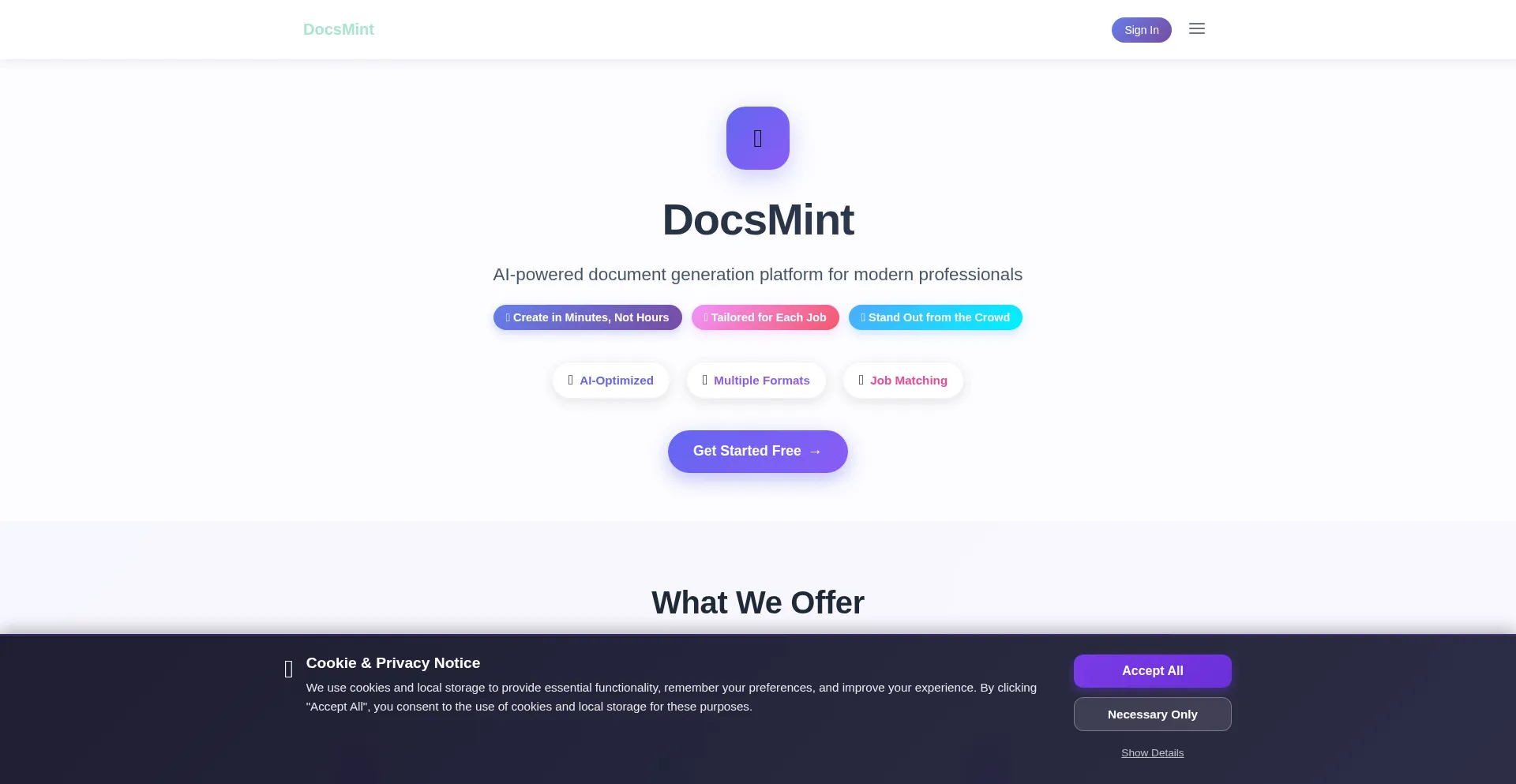 The website implements cookie consent mechanisms in compliance with privacy regulations such as GDPR or CCPA. This demonstrates that docsmint.com adheres to data protection standards and provides users with control over personal data collection practices.