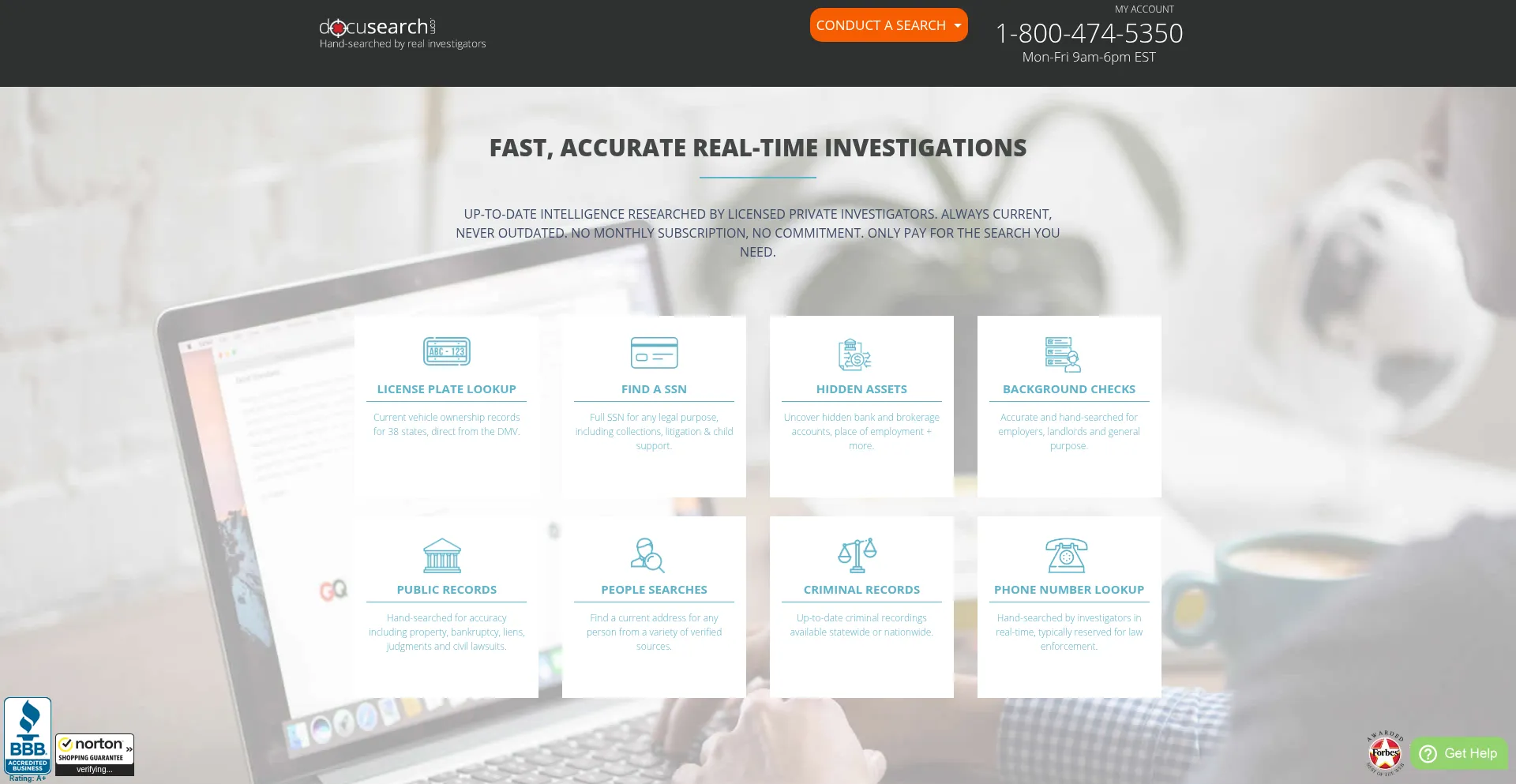 Docusearch.com: license plate lookup, hidden assets & background checks.