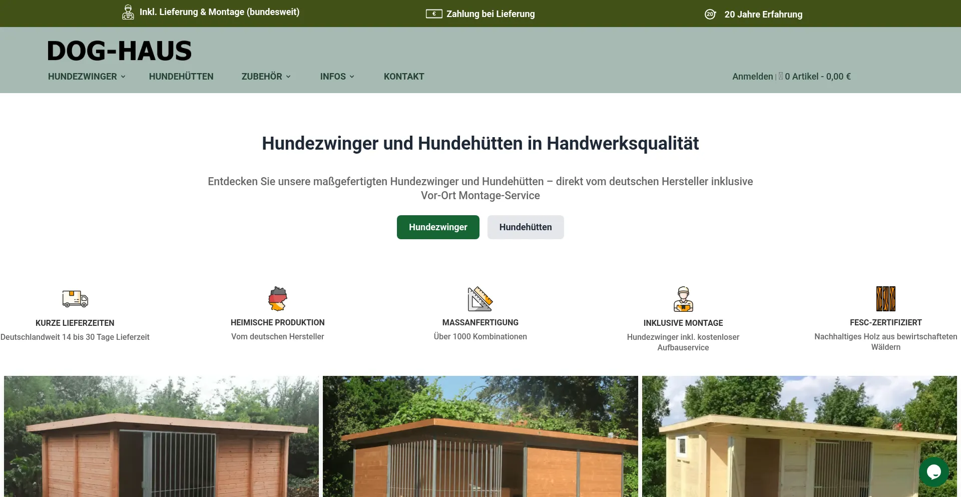Willkommen auf dog-haus.de, Ihrem Spezialisten für hochwertige Hundehütten und Zwinger zu erschwinglichen Preisen. Hier kaufen Sie direkt vom Hersteller inklusive Montageservice.