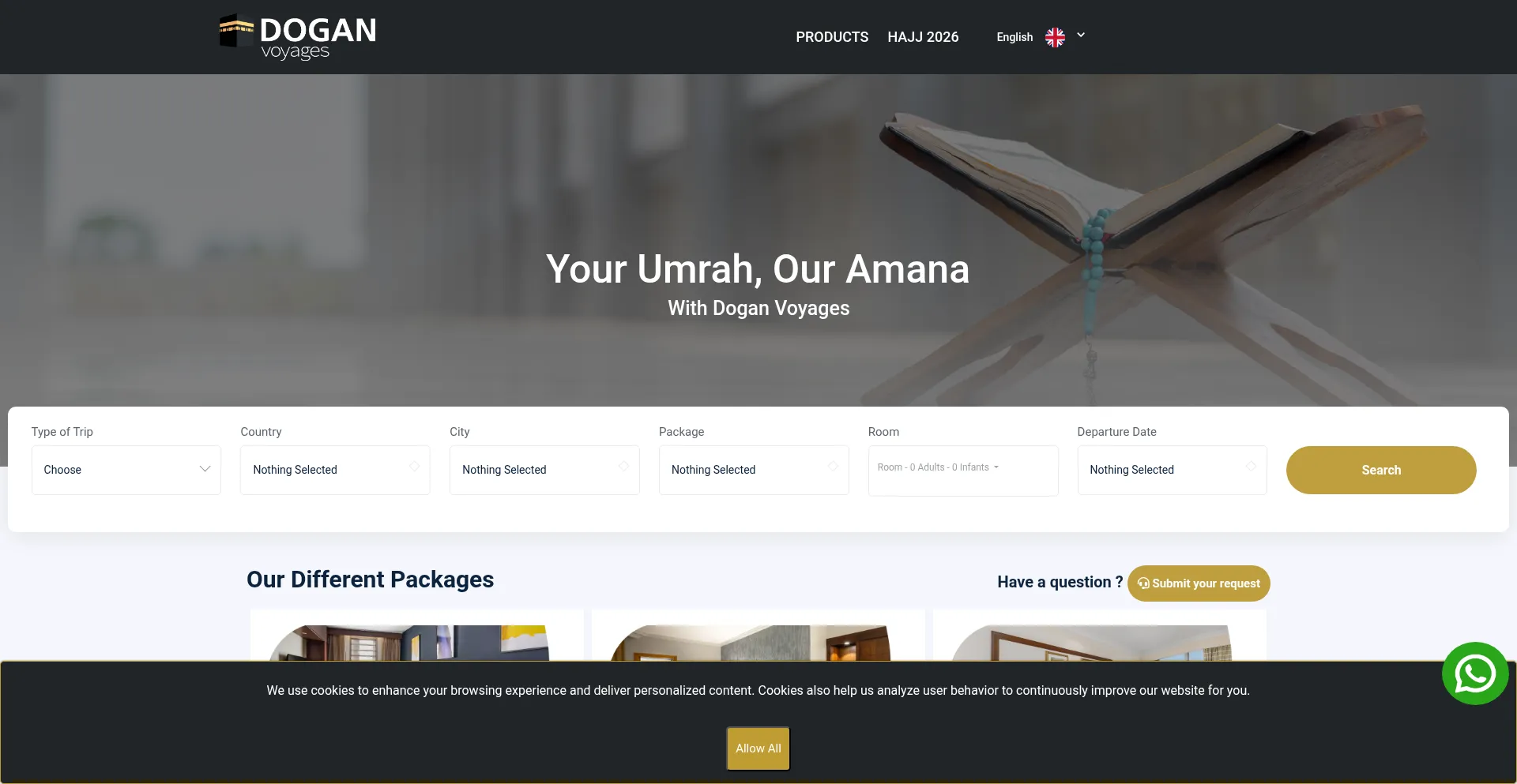 The website implements cookie consent mechanisms in compliance with privacy regulations such as GDPR or CCPA. This demonstrates that doganvoyages.com adheres to data protection standards and provides users with control over personal data collection practices.