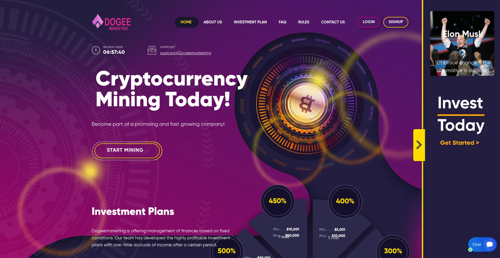 The dogeemarketing.com probably offers cloud mining services or cryptocurrency mining investments. Some platforms provide legitimate mining rental services, while others may use fake mining dashboards to display virtual earnings that cannot be withdrawn.