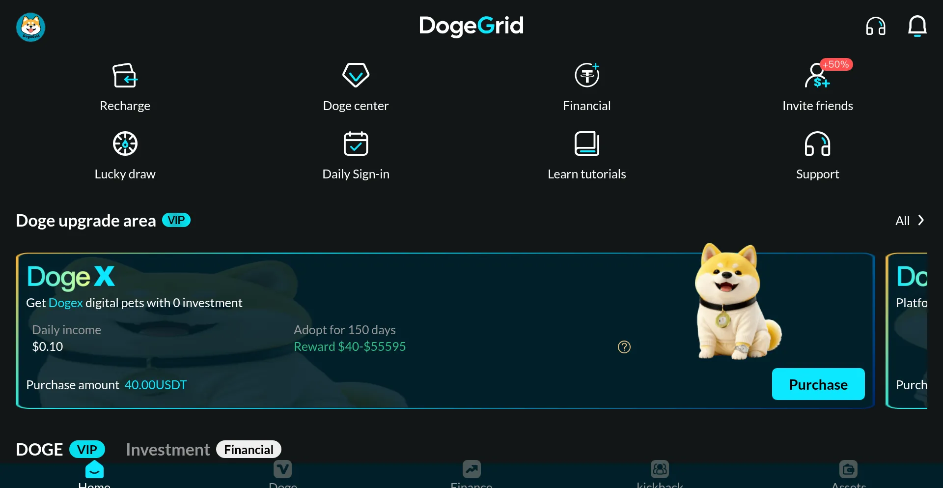 DogeGrid was created to promote Dogecoin, offering unique investment value in DOGE pets. Earn up to 10 levels of team commissions.