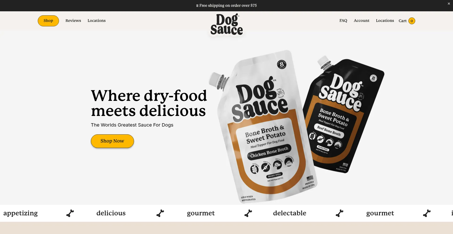 Our analyzer determines that website dogsauce.co is using Shopify CMS. Shopify is a popular e-commerce platform, powering around 4.4% of websites globally.