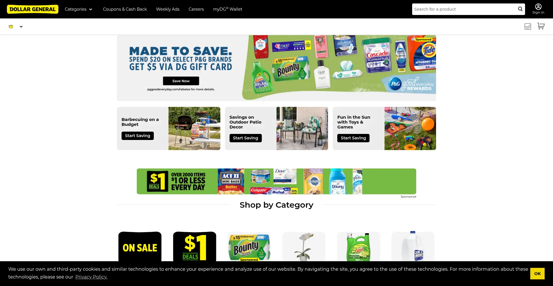 Analysis indicates that dollargeneral.com operates as an e-commerce platform facilitating online transactions for goods or services. The website implements shopping cart functionality, payment processing systems, and product catalog features typical of commercial retail operations.
