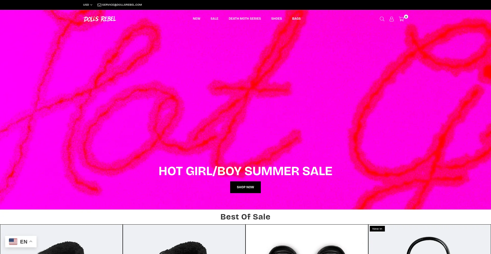 Analysis indicates that dollsrebel.com operates as an e-commerce platform facilitating online transactions for goods or services. The website implements shopping cart functionality, payment processing systems, and product catalog features typical of commercial retail operations.