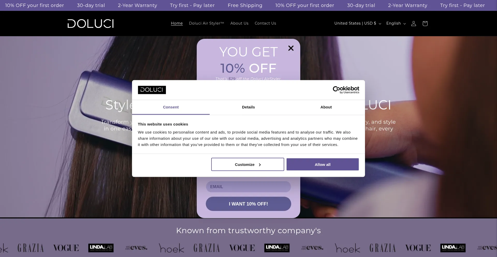 The website implements cookie consent mechanisms in compliance with privacy regulations such as GDPR or CCPA. This demonstrates that doluci.com adheres to data protection standards and provides users with control over personal data collection practices.