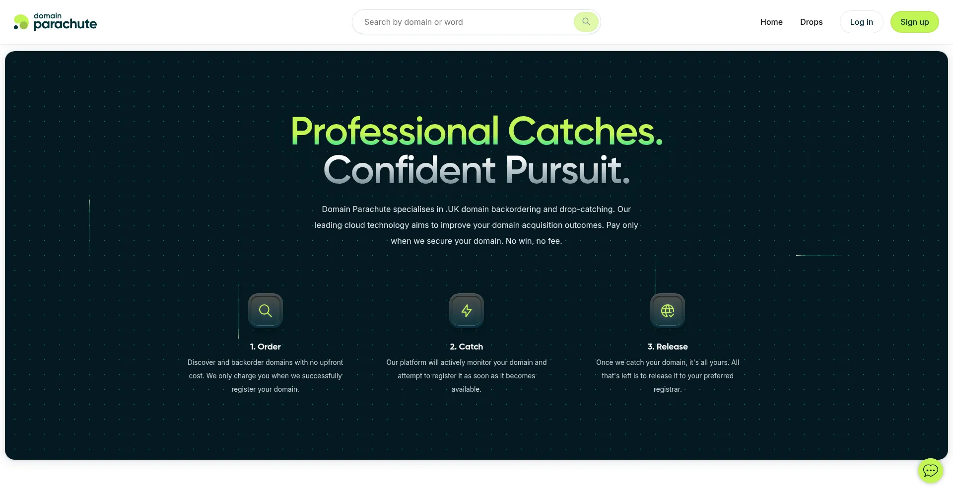 Domain Parachute specialises in domain name backordering and drop-catching for .uk, .co.uk, .org.uk, and .me.uk domains.