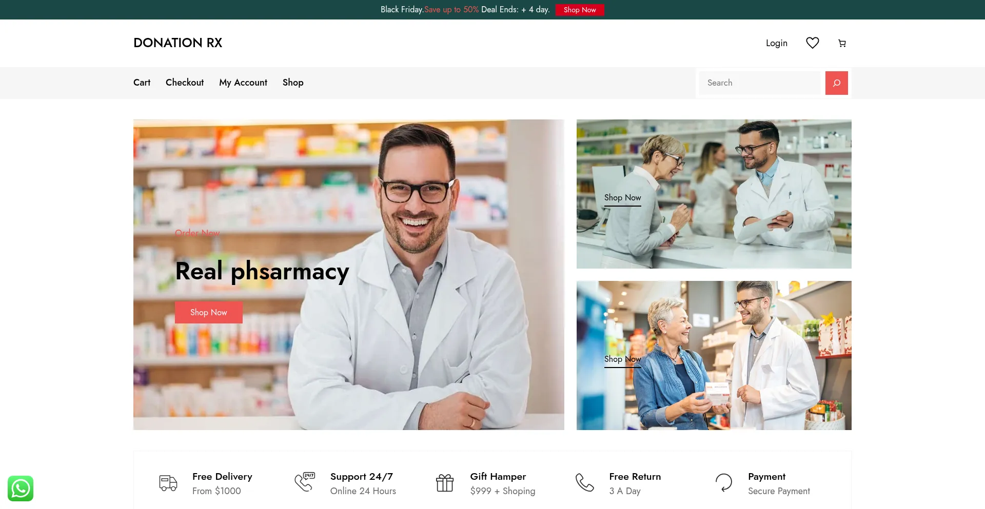 Shopping, Deals, Donation, Drugstore, Registration Form, COVID-19, Wordpress Platform, SEO Optimization, Live Chat, Young Domain