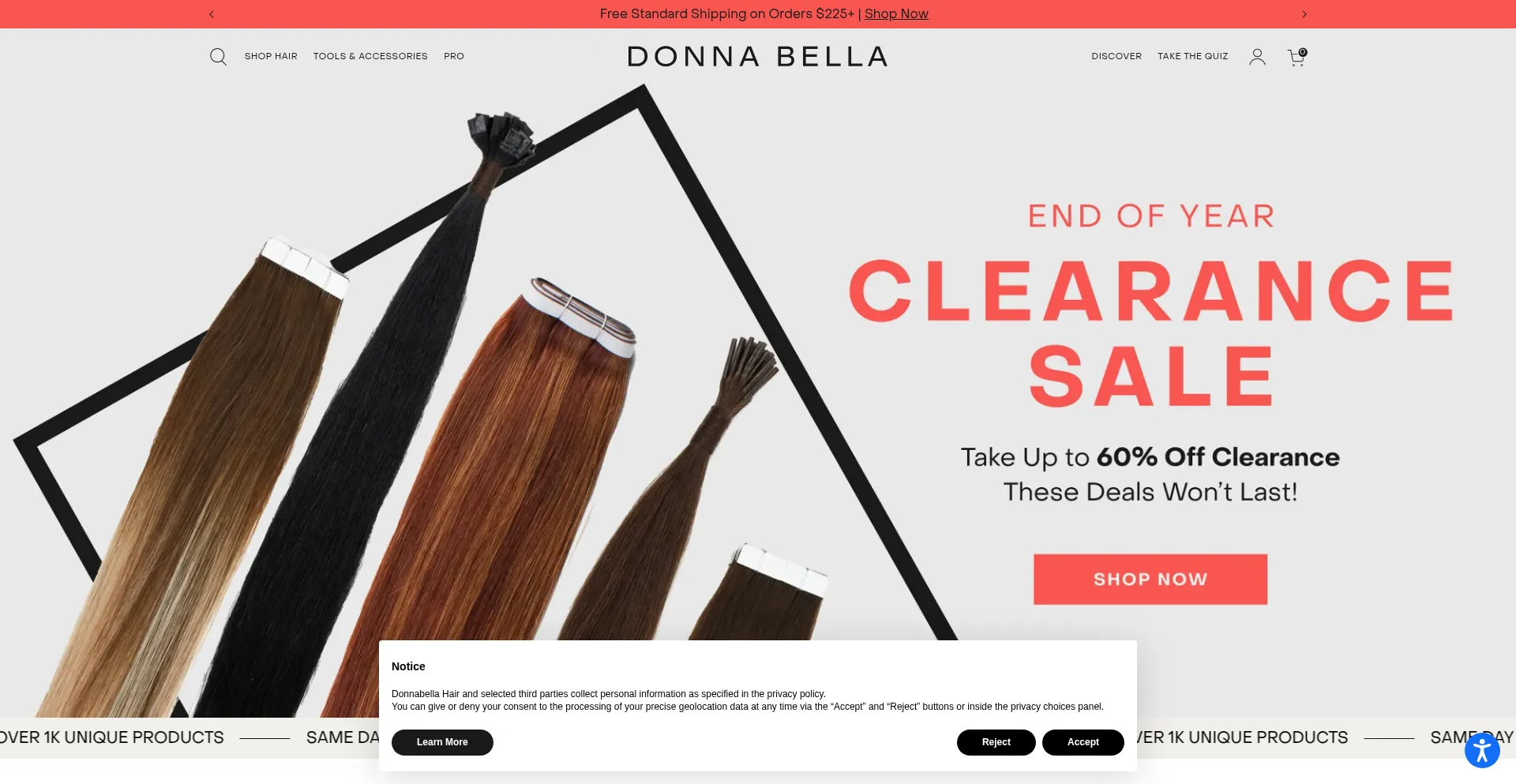 The website implements cookie consent mechanisms in compliance with privacy regulations such as GDPR or CCPA. This demonstrates that donnabellahair.com adheres to data protection standards and provides users with control over personal data collection practices.