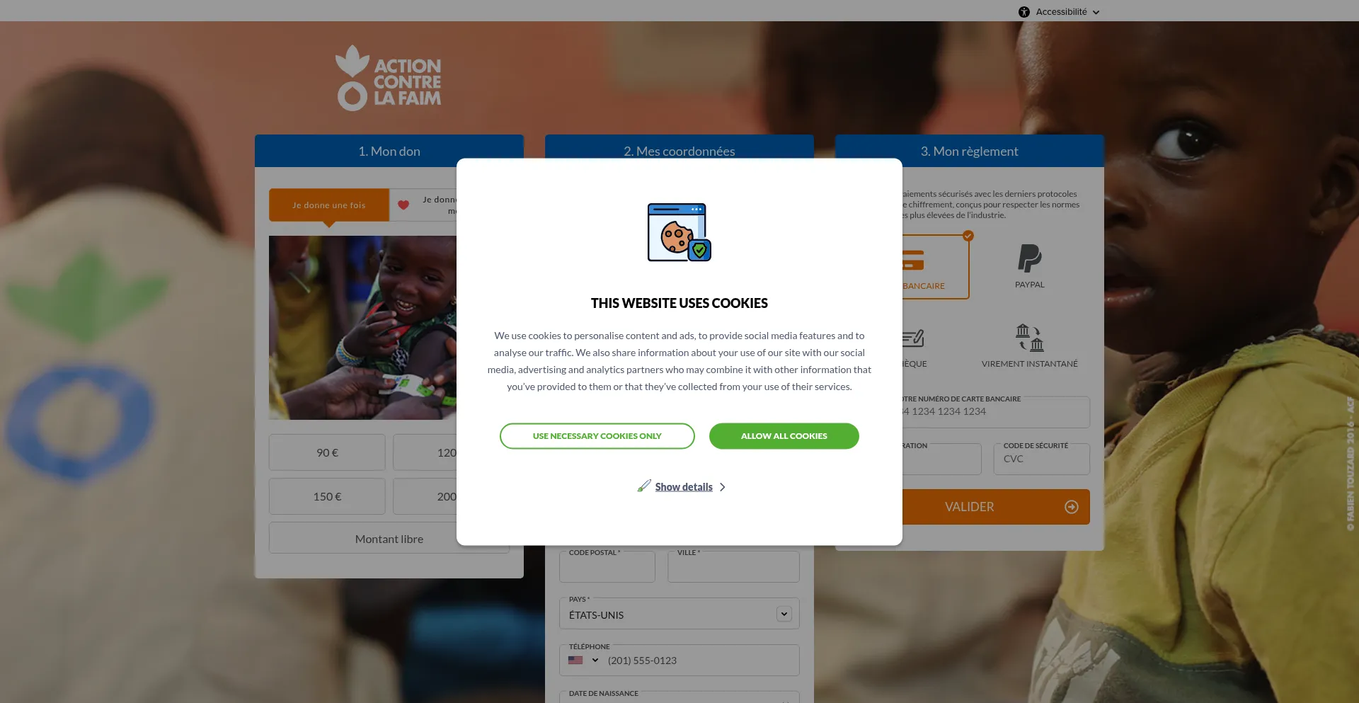 The website implements cookie consent mechanisms in compliance with privacy regulations such as GDPR or CCPA. This demonstrates that donner.actioncontrelafaim.org adheres to data protection standards and provides users with control over personal data collection practices.