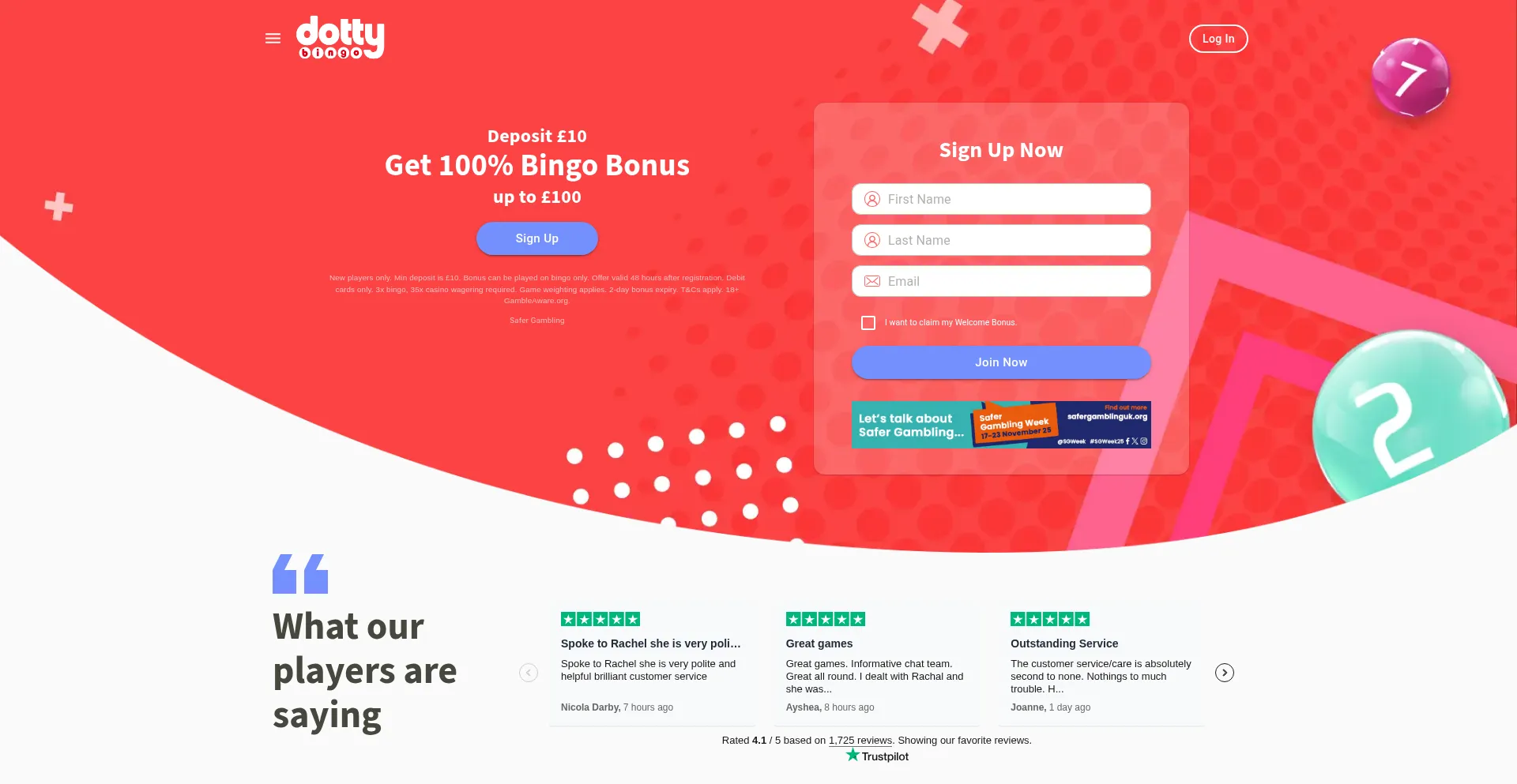 dottybingo.com has a good Trustpilot score (4.1) based on 1725 reviews, indicating a high level of trust from customers. It is a good sign of legitimacy!