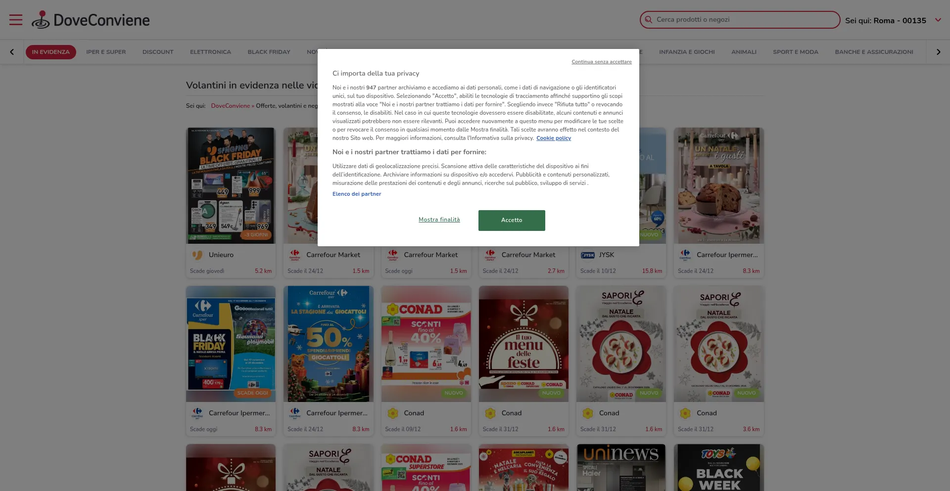 The website implements cookie consent mechanisms in compliance with privacy regulations such as GDPR or CCPA. This demonstrates that doveconviene.it adheres to data protection standards and provides users with control over personal data collection practices.