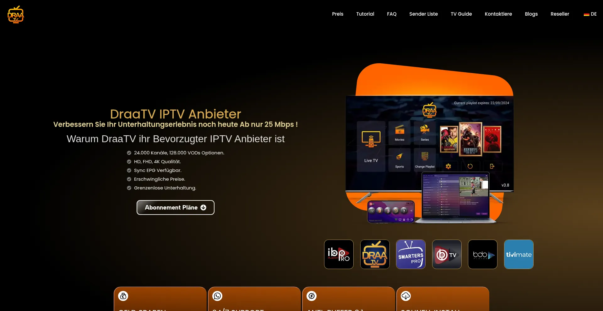 DraaTV – Ihr IPTV-Anbieter für über 24.000 Live-Kanäle und 128.000 Filme/Serien in HD, FHD, und 4K Qualität. Jetzt zum besten Preis abonnieren!