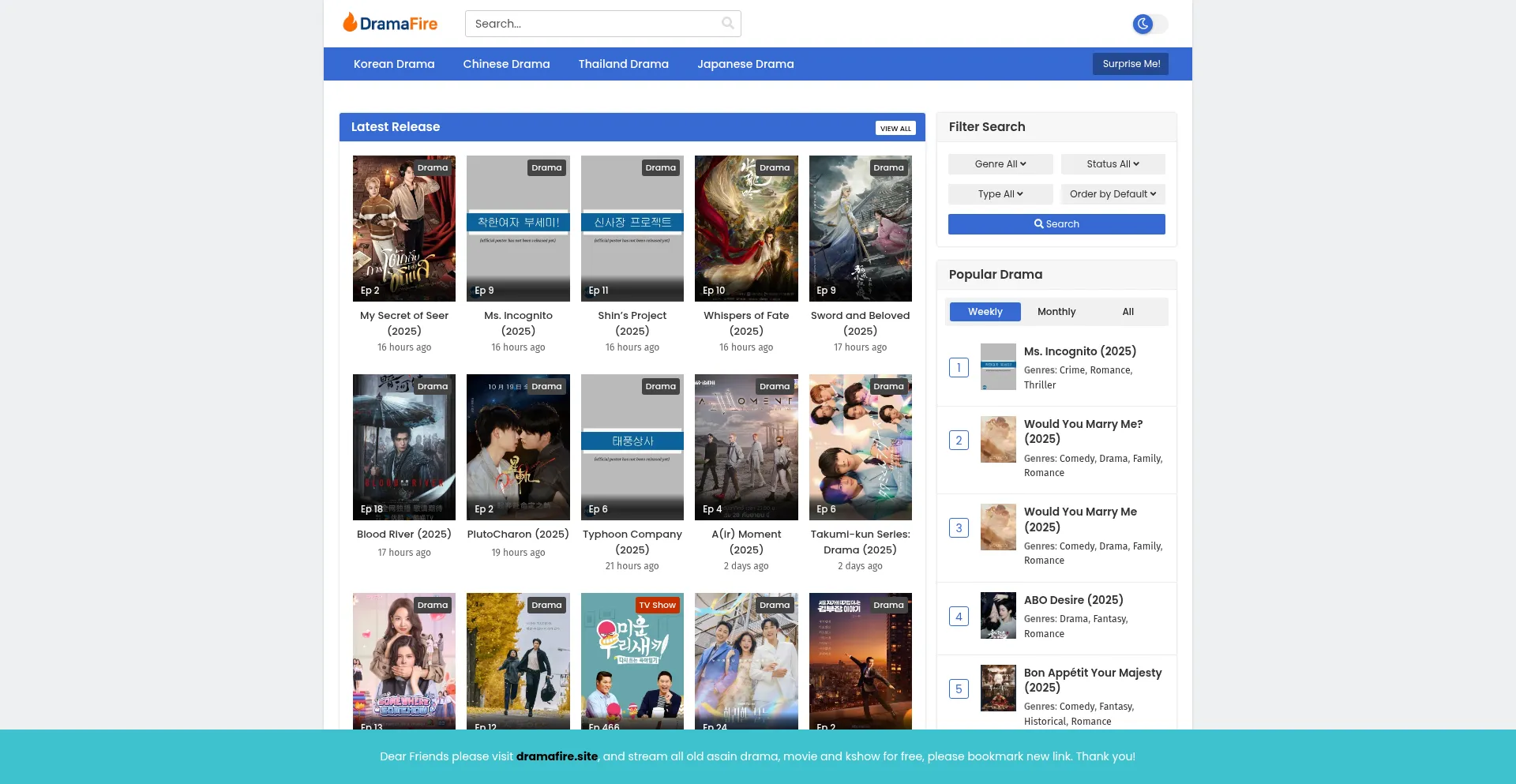 Dramafire is most popular online free streaming website, Where you can watch English Sub And Dub Asian Dramas Movies and series online free.