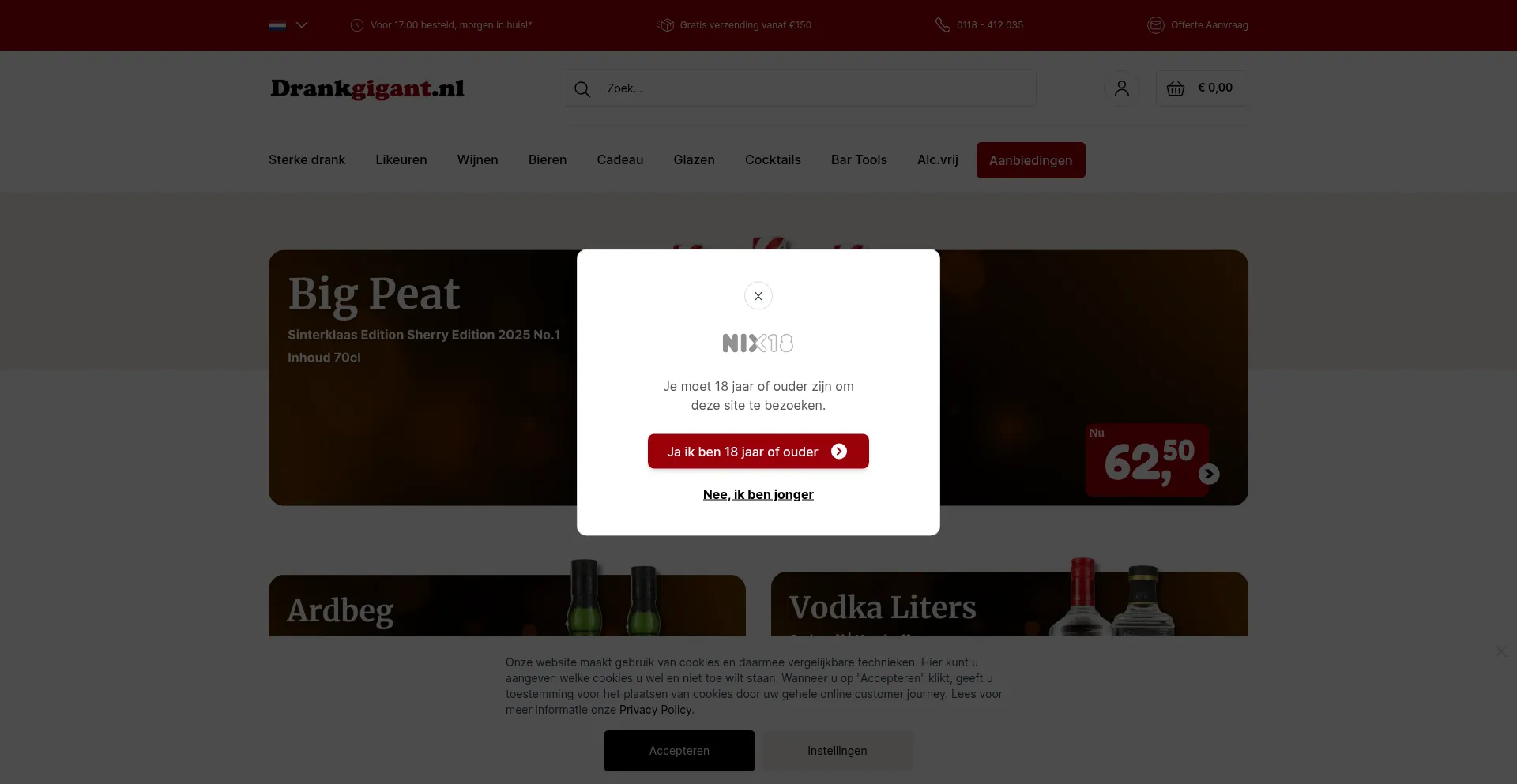 Drankgigant is dé online slijterij van Nederland. Ruim assortiment en razendsnel geleverd. Ontdek het grootste assortiment van de Benelux met ruim 15.000 scherp geprijsde artikelen. | Drankgigant.nl