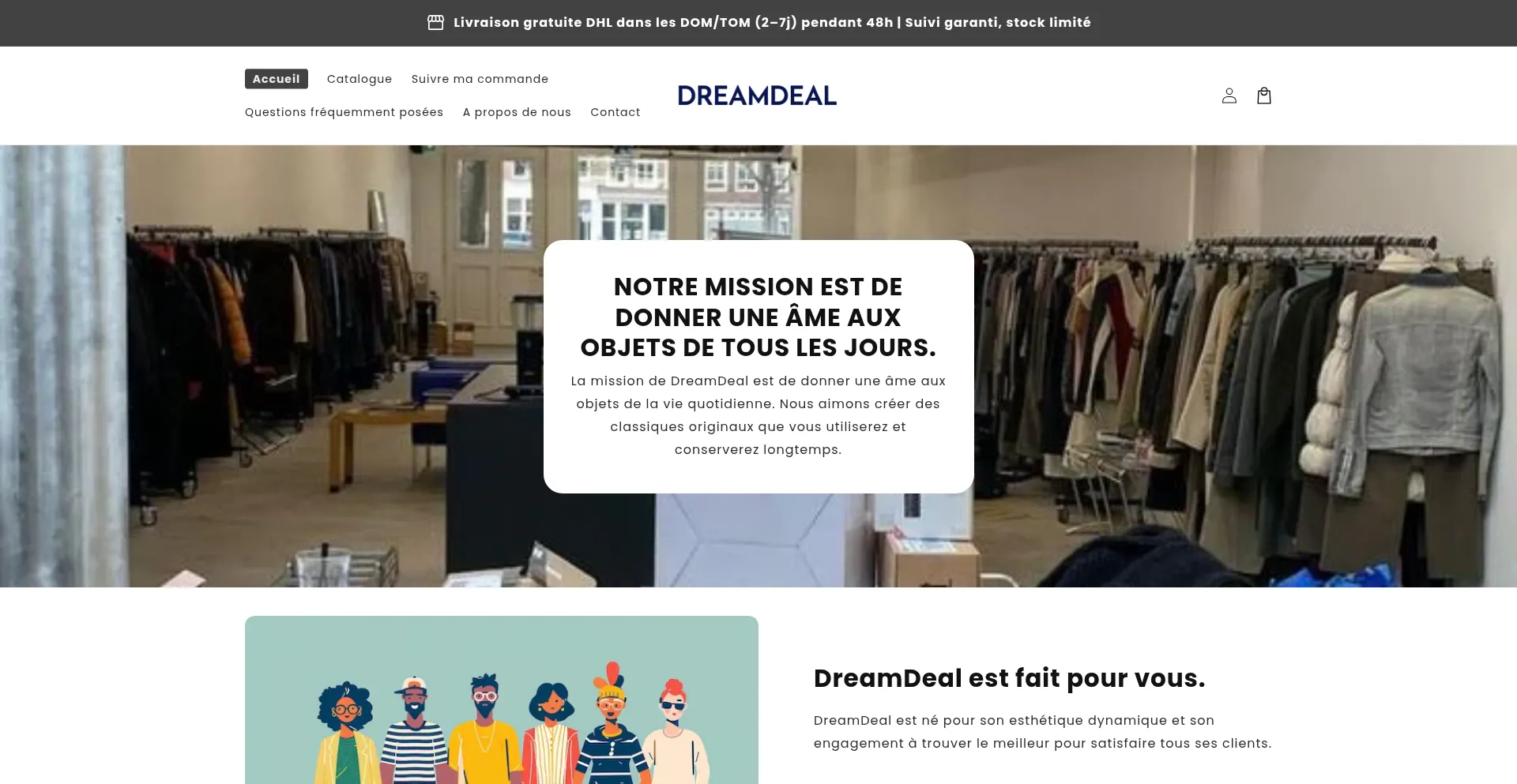 Analysis indicates that dreamdealdom.store operates as an e-commerce platform facilitating online transactions for goods or services. The website implements shopping cart functionality, payment processing systems, and product catalog features typical of commercial retail operations.