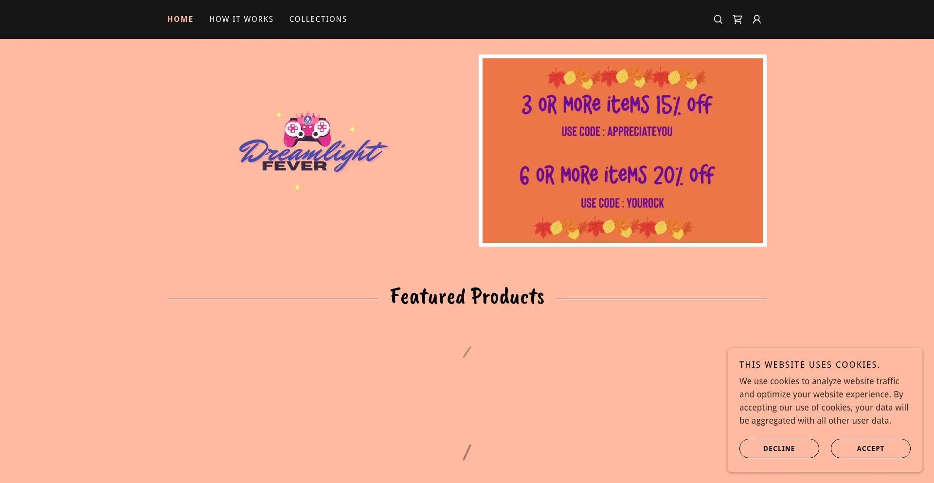 Analysis indicates that dreamlightfever.com operates as an e-commerce platform facilitating online transactions for goods or services. The website implements shopping cart functionality, payment processing systems, and product catalog features typical of commercial retail operations.
