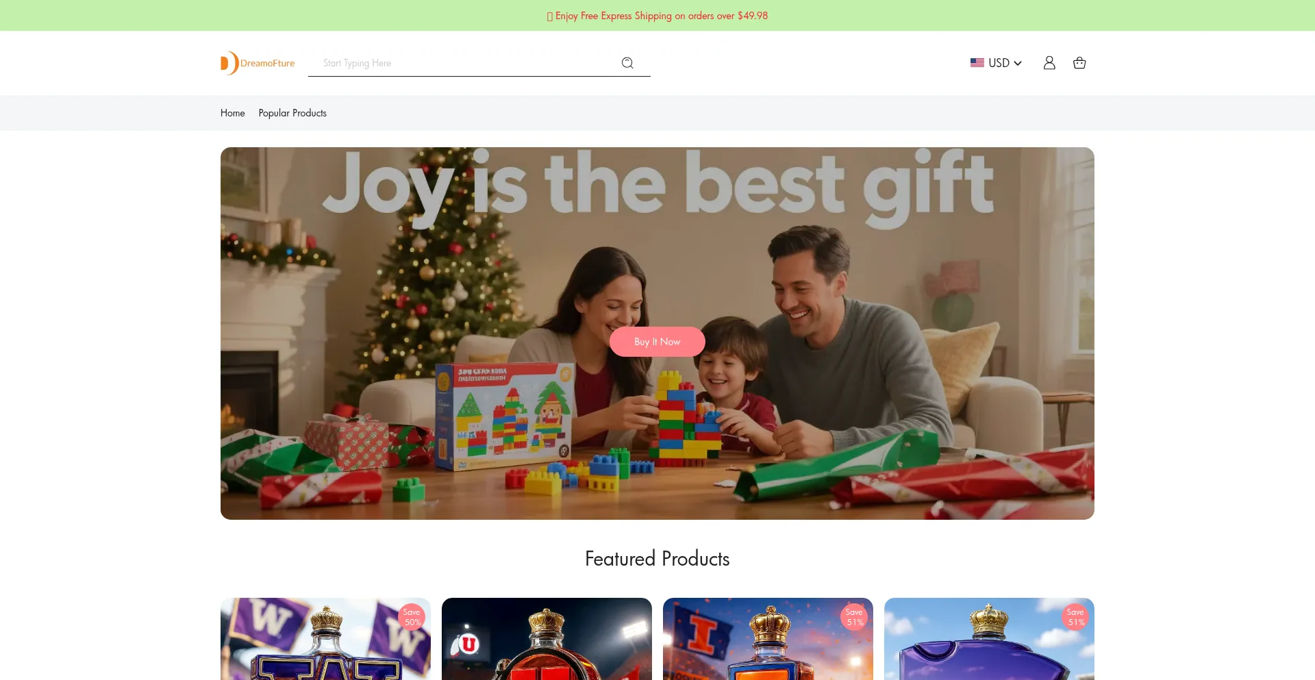 Analysis indicates that dreamofture.com operates as an e-commerce platform facilitating online transactions for goods or services. The website implements shopping cart functionality, payment processing systems, and product catalog features typical of commercial retail operations.