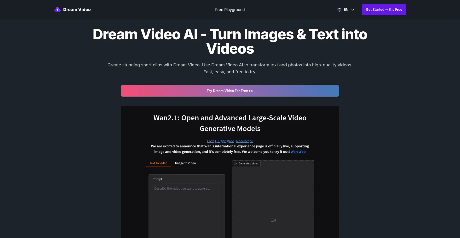 app.pageview.app www.google-analytics.com static.cloudflareinsights.com plausible.io storage.dreamvideo.org wan-ai-wan2-1.hf.space www.dreamvideo.org www.googletagmanager.com dreamvideo.org images.unsplash.com
