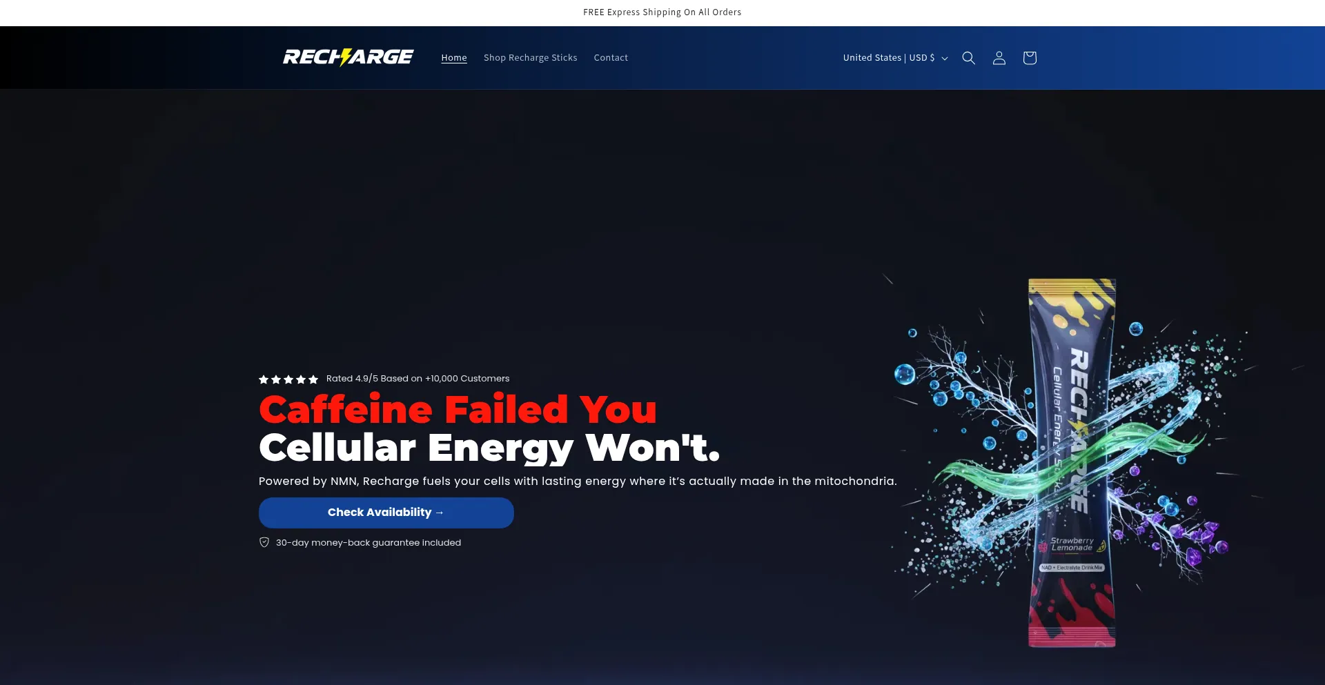 The drinkrecharge.co website utilizes free e-commerce platform solutions, which may indicate cost-conscious operations but could also suggest limitations in security features, customer support, or advanced functionality compared to enterprise-grade solutions.