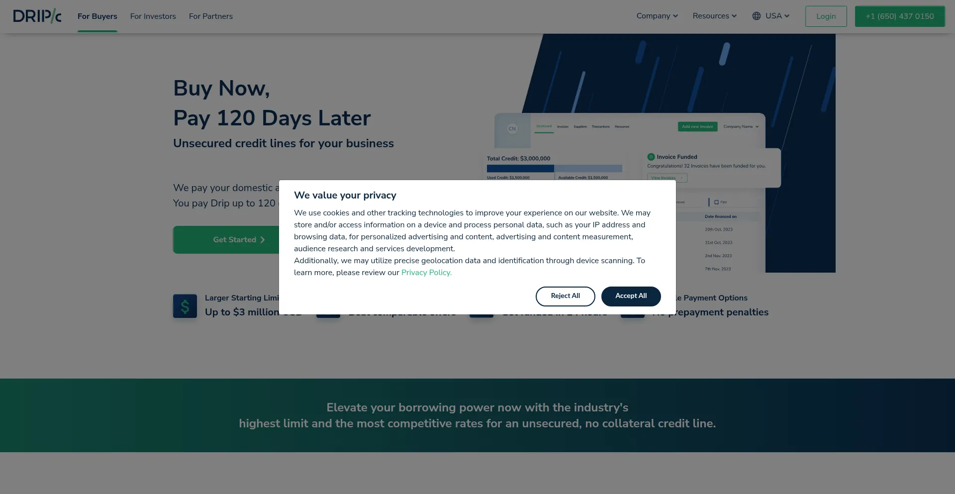 The website implements cookie consent mechanisms in compliance with privacy regulations such as GDPR or CCPA. This demonstrates that dripcapitalmail.com adheres to data protection standards and provides users with control over personal data collection practices.