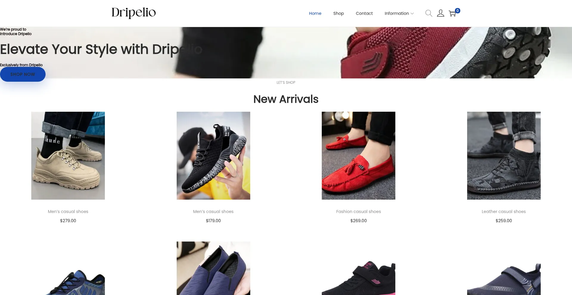 Analysis indicates that dripelio.com operates as an e-commerce platform facilitating online transactions for goods or services. The website implements shopping cart functionality, payment processing systems, and product catalog features typical of commercial retail operations.