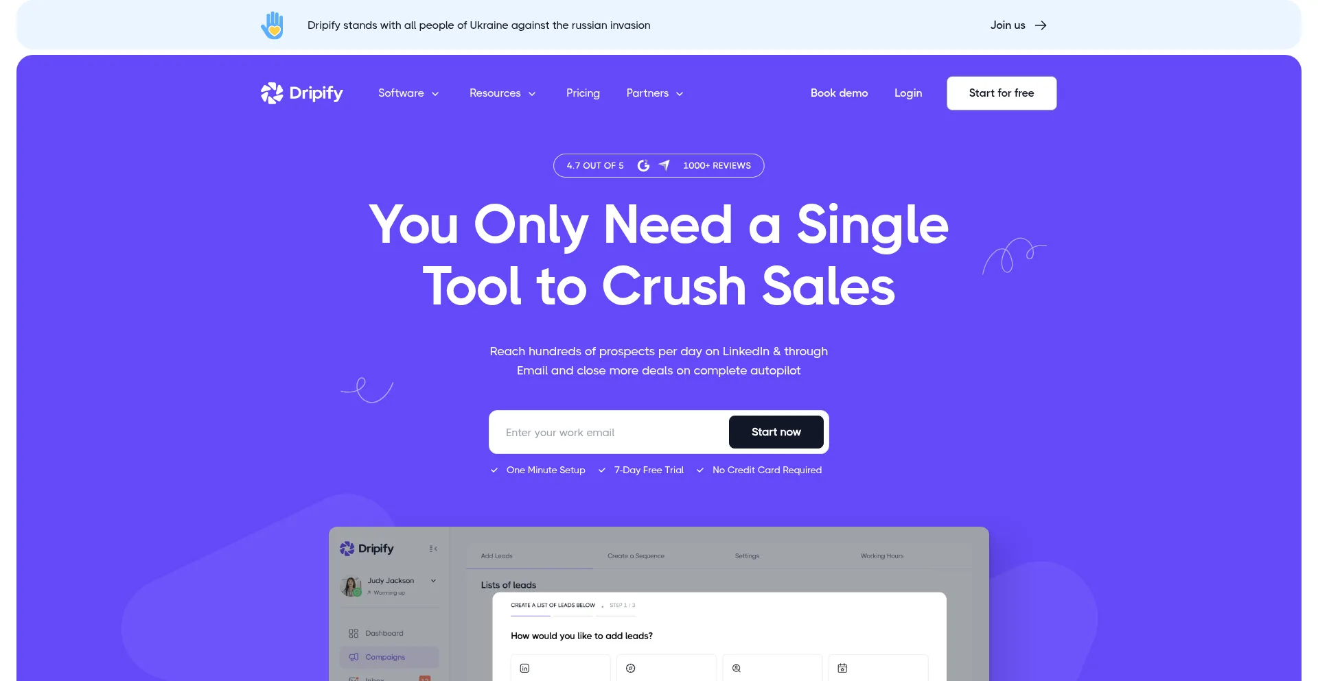 Dripify is the most trusted sales automation tool ➔ LinkedIn automation · Email outreach · Drag-and-drop sequences · Start a free trial today