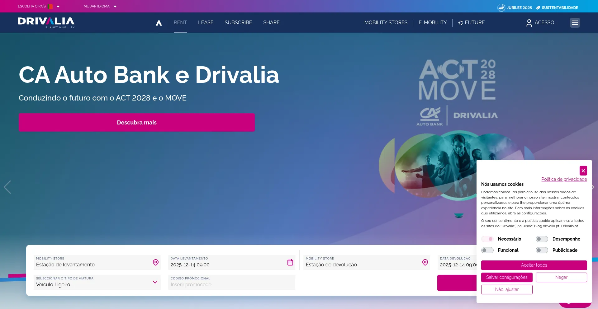 Aluguer de Viaturas Drivalia - Descubra os melhores preços de aluguer numa vasta gama de veículos em Portugal. Reserve já online!