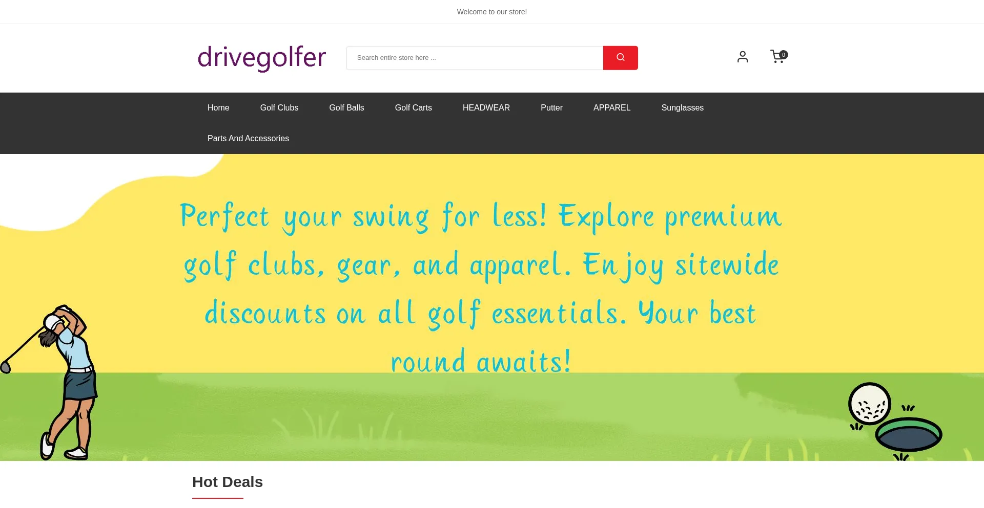 Analysis indicates that drivegolfer.com operates as an e-commerce platform facilitating online transactions for goods or services. The website implements shopping cart functionality, payment processing systems, and product catalog features typical of commercial retail operations.