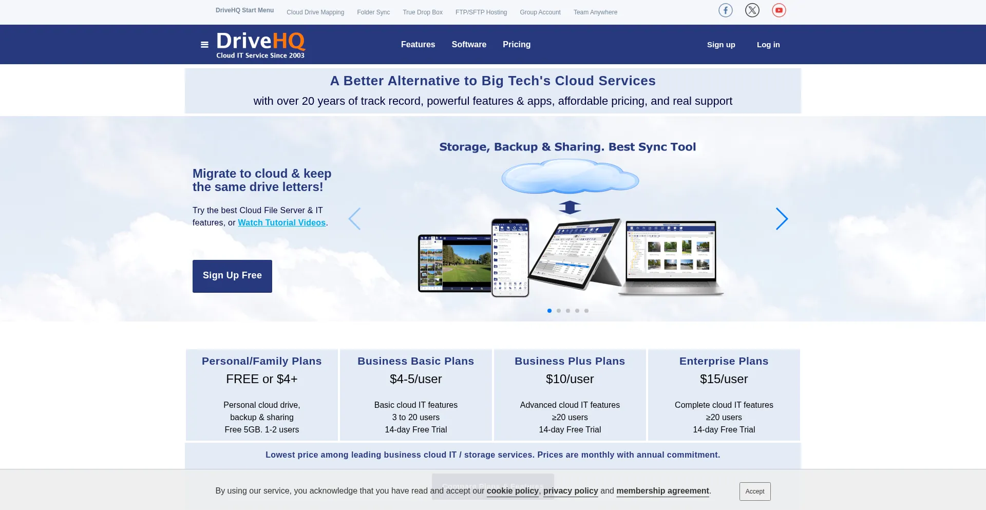 DriveHQ is the first Cloud IT service provider with 18 years of track record. Our service incl. Cloud File Server, WebDAV Drive Mapping, Online Storage, Backup, File Sharing and...