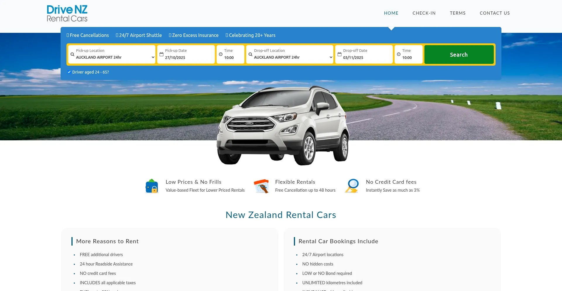 For over 20 years, Drive NZ Rental Cars has offered value-based rental cars from 24/7 locations at both Auckland Airport and Christchurch Airport. Online Check-In. No Frills. Ze...