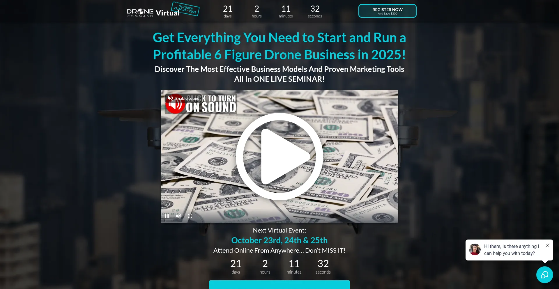 Drone Command Live Virtual is a 3 day virtual event that provides you with everything you need to Start and Run a Profitable 6 Figure Drone Business Now!