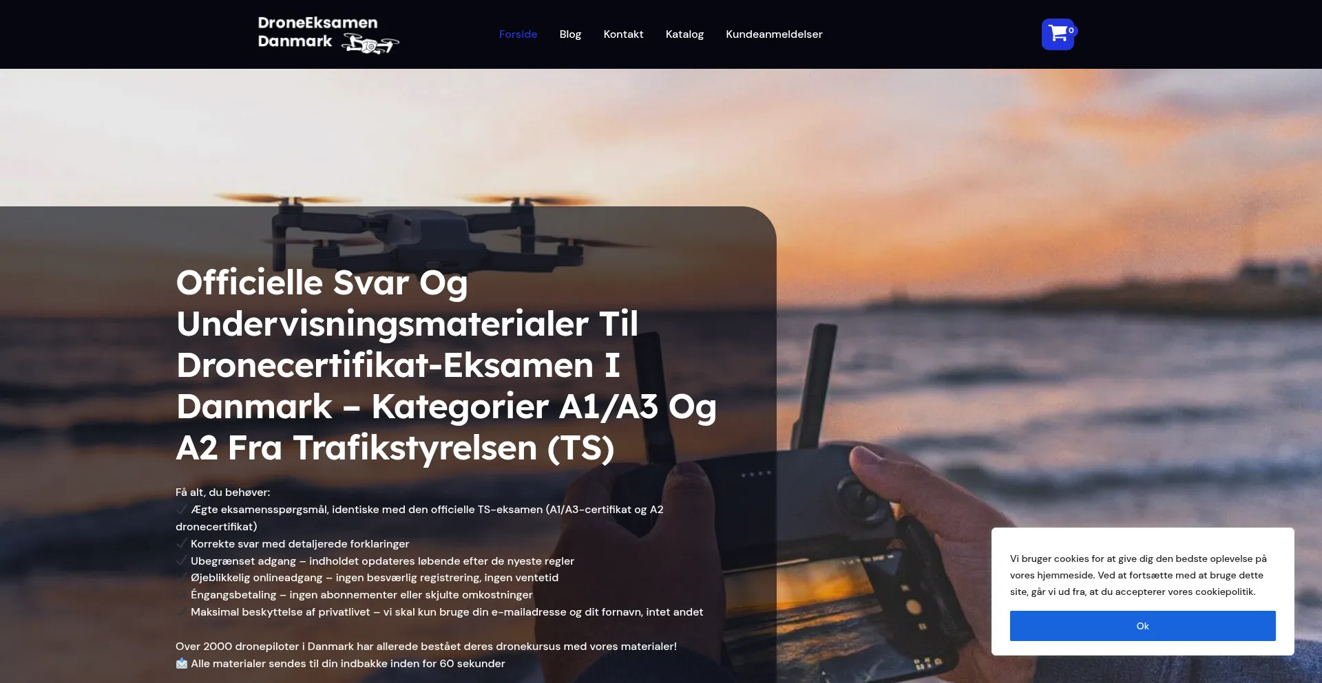 Analysis indicates that droneeksamen.dk operates as an e-commerce platform facilitating online transactions for goods or services. The website implements shopping cart functionality, payment processing systems, and product catalog features typical of commercial retail operations.