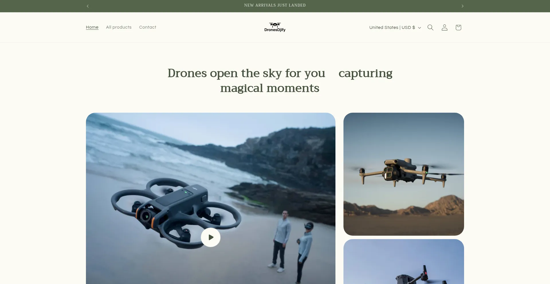 Our analyzer determines that website dronesdjify.shop is using Shopify CMS. Shopify is a popular e-commerce platform, powering around 4.4% of websites globally.