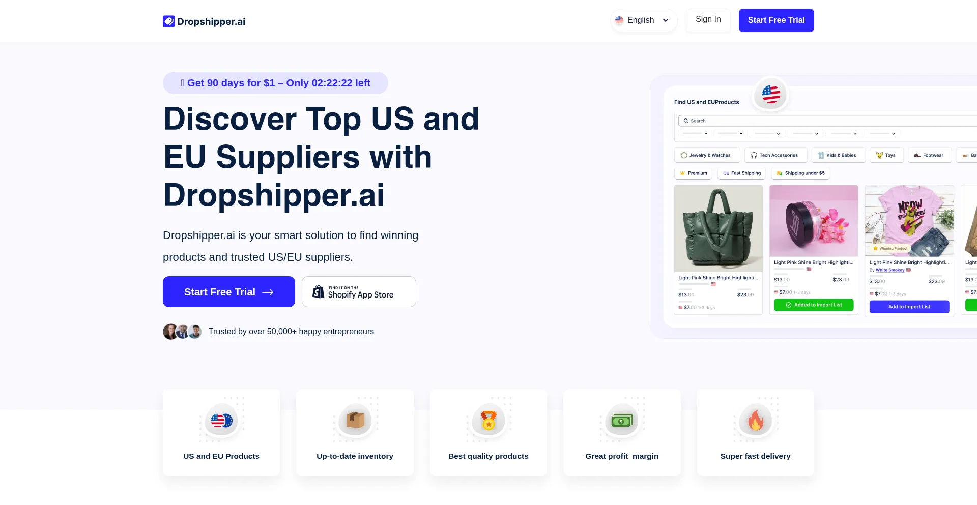 Dropshipper: Discover the best suppliers from the US and EU with Dropshipper.ai